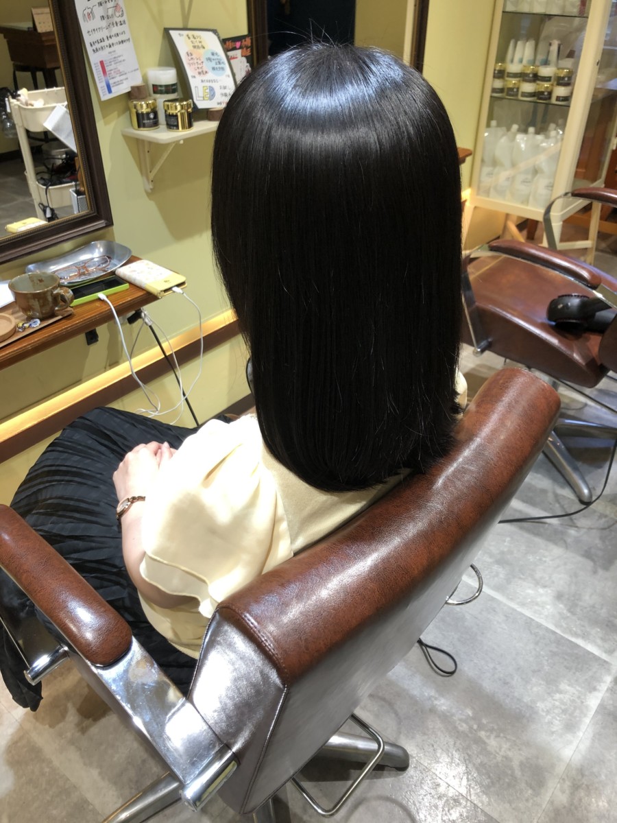 本来は、毎日のアイロンやブローが大変で、少しでも快適になる為の縮毛矯正(ストレート)です。